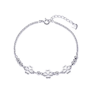 Dámský stříbrný náramek dekorovaný přívěšky ve tvaru čtyřlístků