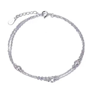 Dvojitý dámský stříbrný náramek dekorovaný čirými zirkony