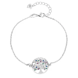 Dámský stříbrný náramek dekorovaný přívěškem ve tvaru stromu života s kamínky čiré barvy
