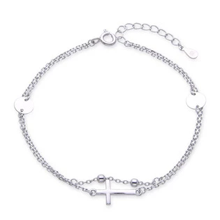 Dvojitý dámský stříbrný náramek dekorovaný přívěšem ve tvaru křížku