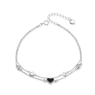 Dvojitý stříbrný náramek dekorovaný černým srdíčkem