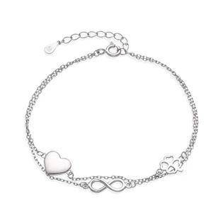 Dvojitý stříbrný náramek se sdíčkem, čtyřlístkem a nekonečnem