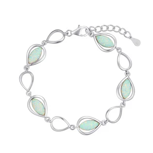 Dámský stříbrný náramek dekorovaný bílými syntetickými opály