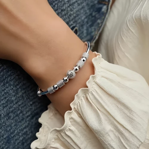 Obručový náramek jemný pevný zdobený korálkem a válečky osázené jemnými zirkonky