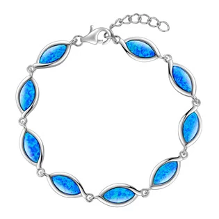 Dámský stříbrný náramek dekorovaný modrým syntetickým opálem