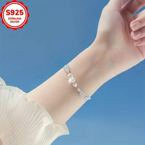 Náramek je zdobený třemi hadovitými řetízky na kterých jsou zavěšeny tři broušené kuličky ve velikosti prostřední kuličky 7mm postranní ve velikosti 4mm