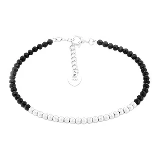 Stříbrný náramek dekorovaný černými korálky a stříbrnými kuličkami