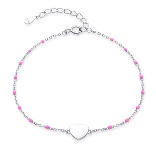 Dámský stříbrný náramek deorovaný srdíčkem a korálky růžové barvy