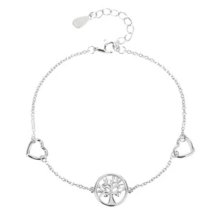 Dámský stříbrný náramek dekorovaný srdíčky a stromem života
