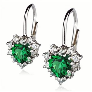 Překrásné stříbrné náušnice ve tvaru srdíček osázených zelenými a čirými zirkony Náušnice jsou vyrobeny ze stříbra ryzosti 925-1000 Náušnice jsou povrchově upraveny rhodiováním. Tato povrchová úprava brání černání náušnic a zamezuje alergickým reakcím. Parametry materiál stříbro (Ag 925-1000) povrchová úprava rhodium druh kamene zirkon typ uzávěru dámský patent rozměr srdíček 8,5 x 8,5 mm výška náušnic 16 mm hmotnost 1,6 g