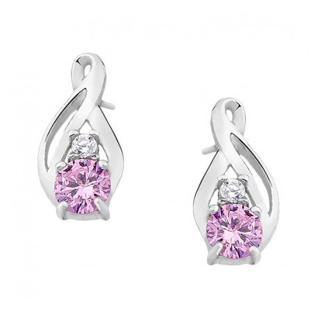 Stříbrné náušnice 925-1000 s zirkony, rhodiované, růžová Váha 1.2g, Rozměry 12x5.5mm Zapínání na puzetu
