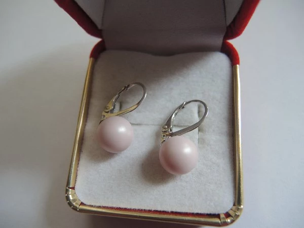 Stříbrné náušnice s růžovými perličkami ve velikosti 10mm Zapínání klapka Vyrobeno v České republice ze stříbra o ryzosti 925.