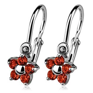 Dětské stříbrné náušnic - kytičky červenooranžové
