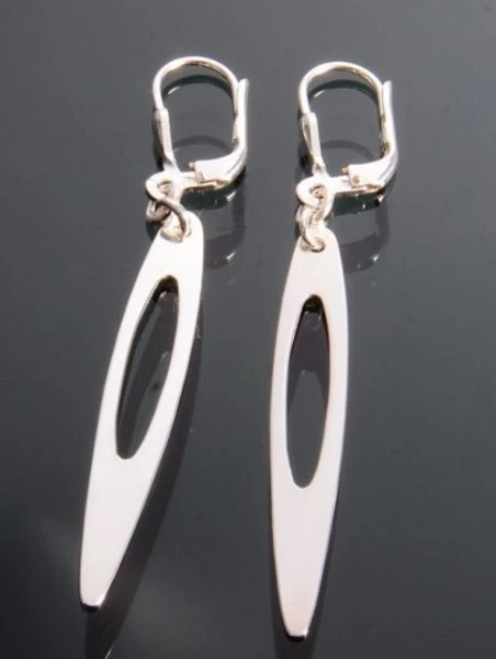 Moderní stříbrné visací náušnice o rozměru 6 x 40 mm. Hmotnost celého páru: 1,84 g Vyrobeno v České republice ze stříbra o ryzosti 925/1000