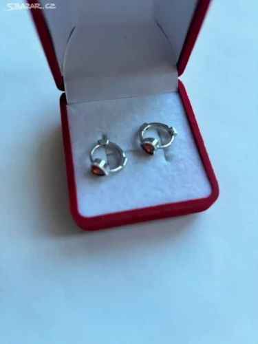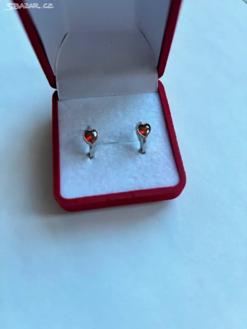 Módní náušnice ze stříbra 925 srdce s červeným kubickým zirkonem