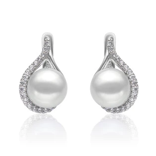 Překrásné dámské náušnice dekorované přírodními perlami a zirkony čiré barvy