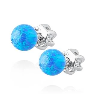 Stříbrné náušnice zdobené syntetickým opálem modré barvy