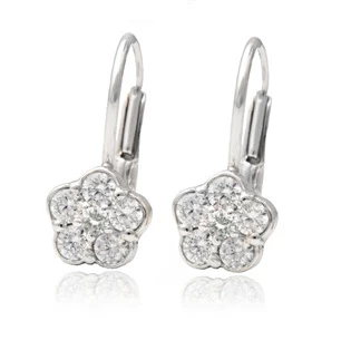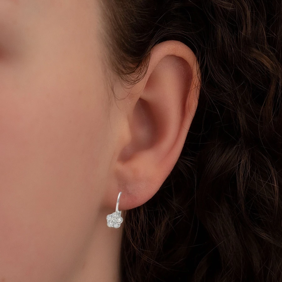 Stříbrné dívčí náušnice ve tvaru kytiček s čirými zirkony