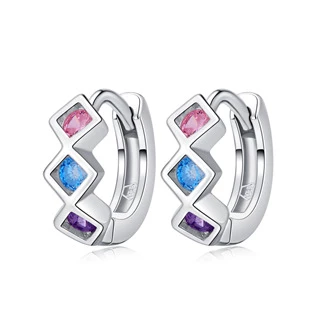 Náušnice kroužky dekorované barevnými zirkony. Náušnice jsou vyrobeny ze stříbra s jakostním označením 925/1000 povrchově upravené rhodiováním