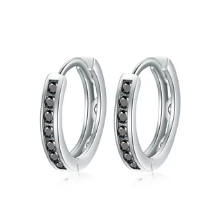 Dámské náušnice kroužky dekorované černými zirkony. Náušnice jsou vyrobeny ze stříbra s jakostním označením 925/1000 povrchově upravené rhodiováním