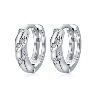 Dámské náušnice kroužky dekorované kubickými zirkony čiré barvy. Náušnice jsou vyrobeny ze stříbra s jakostním označením 925/1000 povrchově upravené rhodiováním