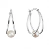 Stříbrné kruhové náušnice dekorované bílou syntetickou perličkou. Materiál náušnic je jakostní stříbro s rhodiovanou povrchovou úpravou.