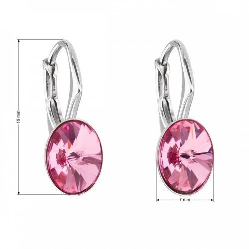 Dámské stříbrné náušnice na klapku dekorované oválnými růžovými kameny z dílny Crystals from Swarovski®