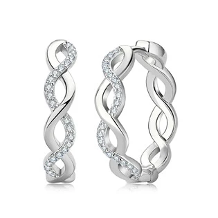 Stříbné náušnice v podobě propletených kružků. Náušnice jsou bohatě zdobené MOISSANITY kulatého briliantového brusu
