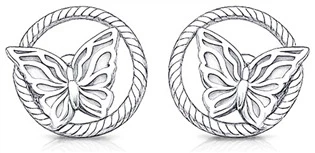 Jemné stříbrné náušnice s motivem motýla zasazeného do elegantního kruhu působí lehce, vzdušně a velmi ženským dojmem. Precizní výřez křídel dodává šperku jemnost a detail, zatímco kruh symbolizuje harmonii, celistvost a nekonečný koloběh života.