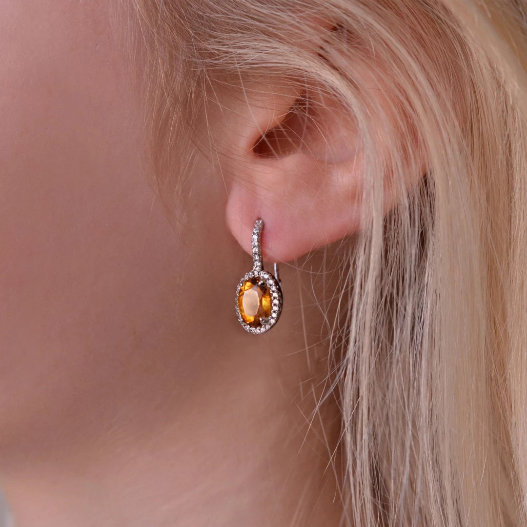 Výrazné náušnice s pravým citrínem bohatě osázené třpytivými zirkony podtrhnou půvab každé elegantní dámy.