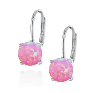 Stříbrné náušnice zdobené syntetickým opálem růžové barvy