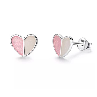 Stříbrné náušnice ve tvaru srdíček s bílou a růžovou výplní