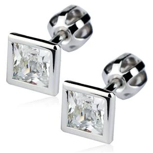 Stříbrné puzetové náušnice se šroubovacím uzávěrem - čtverečky se zirkonem