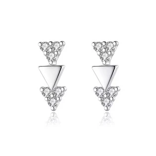 Stříbrné náušnice ve tvaru propojených trojúhelníků zdobených zirkony