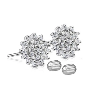 Stříbrné náušnice ve tvaru kytiček zdobených zirkony