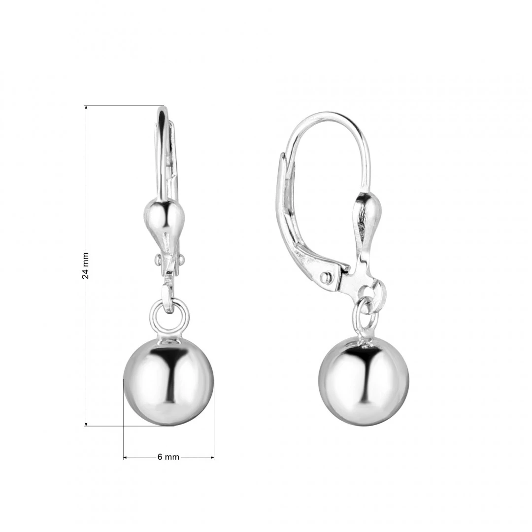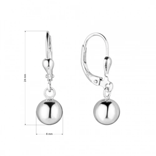 Stříbrné visací náušnice kuličky s uzávěry na klapku. Náušnice jsou vyrobeny ze stříbra s jakostním označením 925/1000