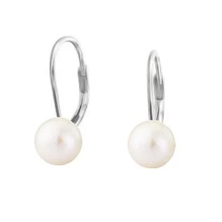 Stříbrné náušnice na klapku dekorované bílými syntetickými perličkami rozměru 8 mm