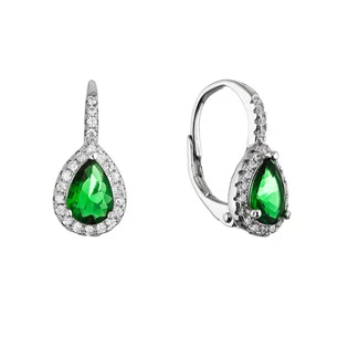Středem každé náušnice prochází zirkon v odstínu zelená , broušený do tvaru kapky, který jemně odráží světlo a dodává šperku svěží a zářivý vzhled. Okolo hlavního kamene jsou precizně zasazeny drobné čiré kamínky, které pokračují směrem vzhůru k zapínání, kde jsou navíc umístěny další tři pro maximální třpytivý efekt. Díky pohodlnému zapínání na klapku jsou náušnice ideální pro každodenní nošení i slavnostní příležitosti.