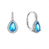 Středem každé náušnice prochází zirkon v odstínu aqua , broušený do tvaru kapky, který jemně odráží světlo a dodává šperku svěží a zářivý vzhled. Okolo hlavního kamene jsou precizně zasazeny drobné čiré kamínky, které pokračují směrem vzhůru k zapínání, kde jsou navíc umístěny další tři pro maximální třpytivý efekt. Díky pohodlnému zapínání na klapku jsou náušnice ideální pro každodenní nošení i slavnostní příležitosti.