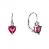 Stříbrné visací náušnice z kvalitního stříbra 925/1000 s rhodiovou úpravou zaujmou svým romantickým a elegantním designem ve tvaru srdce. Dominantou každé náušnice je výrazný zirkon rubínové barvy, zasazený do jemné kovové konstrukce, která je efektně rozpůlená a dodává šperku lehkost a moderní výraz.