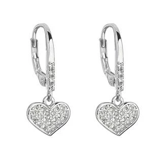 Dámské visací stříbrné náušnice srdíčka dekorovaná kubickými zirkony