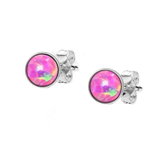 Stříbrné puzetové náušnice dekorované syntetickým opálem růžové barvy