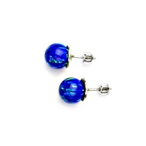 Stříbrné šroubvací náušnice zdobené kulatými syntetickými opály modré barvy