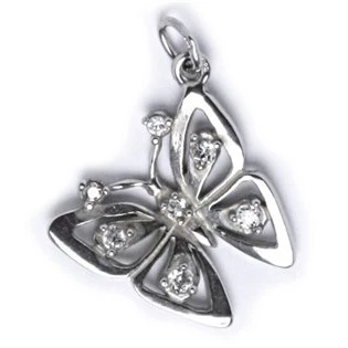 Stříbrný přívěšek ve tvaru motýla Přívěšek je vyroben ze stříbra s jakostním označením 925-1000 a povrchově upraven rhodiováním Parametry materiál stříbro (Ag 925-1000) povrchová úprava rhodium druh kamene zirkon rozměr přívěšku (šíře x délka) 19x17mm výška přívěšku (s očkem) 19mm