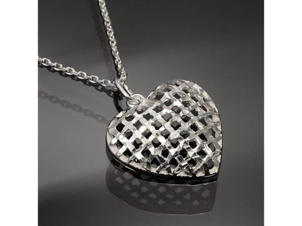 Přívěsek ve tvaru srdce, který se lehce nosí a působí masivně. Rozměry 17 x 17 mm H,otnost: 1,21 g Materiál Stříbro o ryzosti 925. Vyrobeno ručně v ČR.