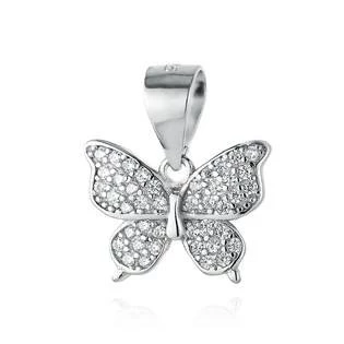 Stříbrný přívěšek motýlek zdobený zirkony čiré barvy Přívěšek je vyroben ze stříbra s jakostním označením 925-1000 s povrchovou úpravou rhodium Rhodium patří mezi drahé kovy, patřící do skupiny platinových, chrání stříbro před černáním a zvyšuje lesk sříbrných šperků. Přívěšek je dodáván v papírové dárkové krabičce Parametry materiál stříbro (Ag 925-1000) povrchová úprava rhodium druh kamene zirkon rozměr přívěšku 16 x 16 mm hmotnost 1,76 g