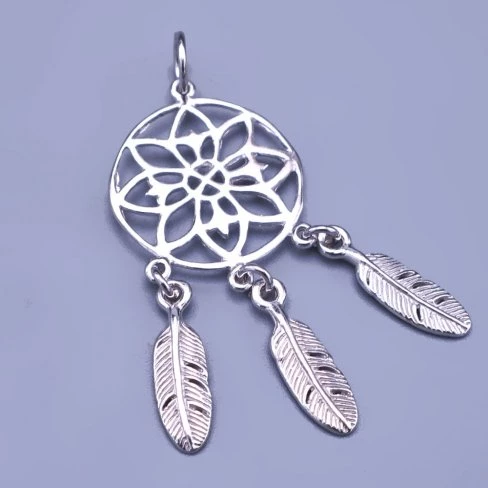 Krásný dámský stříbrný přívěsek - lapač snů. Přívěsek je střední velikosti a skvěle se hodí pro každodenní nošení. Peříčka jsou zdobené jemným rýhováním.