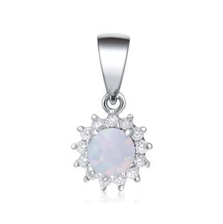 Stříbrný přívěšek dekorovaný synterickým opálem a zirkony. Přívěšek je vyroben ze stříbra s jakostním označením 925/1000 povrchově upravené rhodiováním