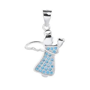 Stříbrný přívěšek ve tvaru andílka zdobeného modrými zirkony