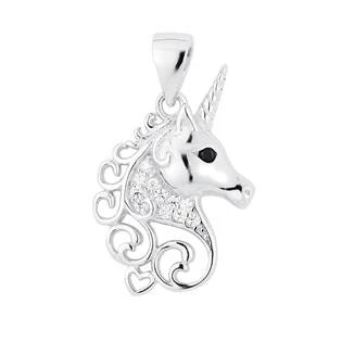 Stříbrný přívěšek jednorožec zdobený zirkony čiré barvy